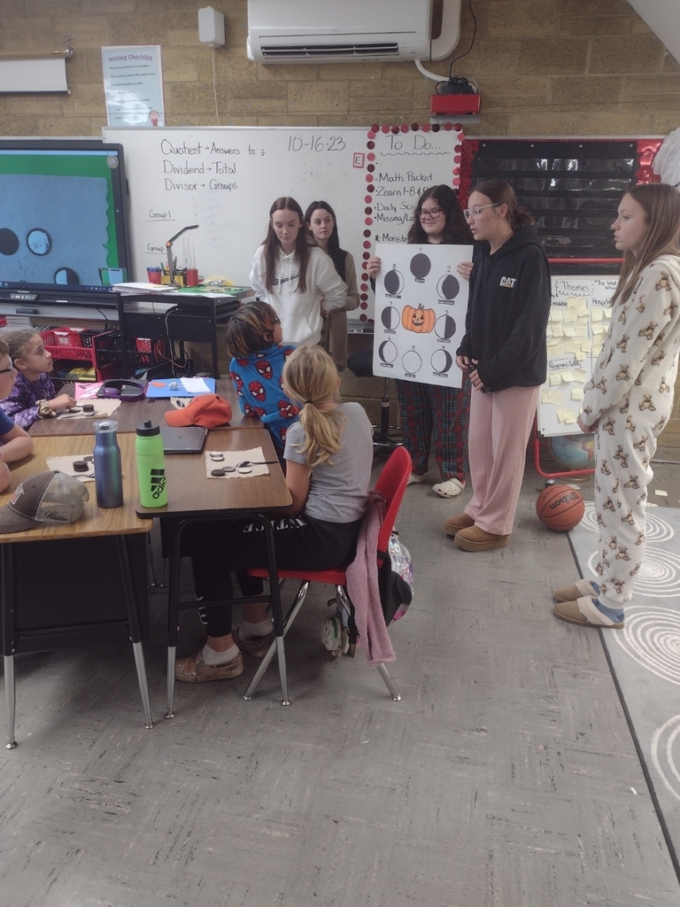 High School Intro to Early Childhood Education students teaching 3rd graders about moon phases with oreos!