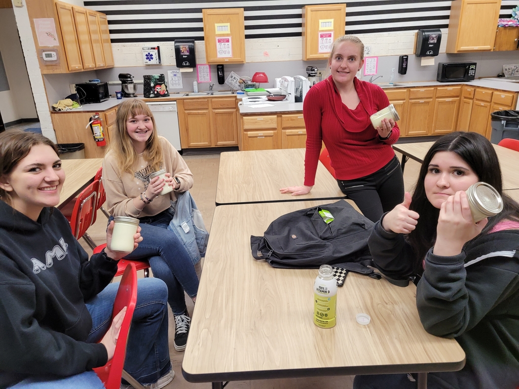 This week, the high school Family and Consumer Science class made homemade butter, and with the remaining buttermilk made homemade buttermilk biscuits!