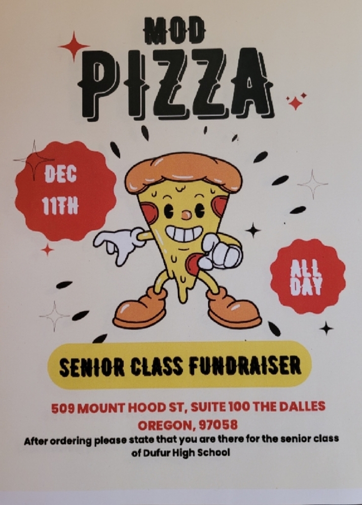 Dont forget to stop by MOD Pizza in The Dalles today and support the senior class! Be sure to let them know you are there for the fundraiser!