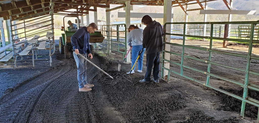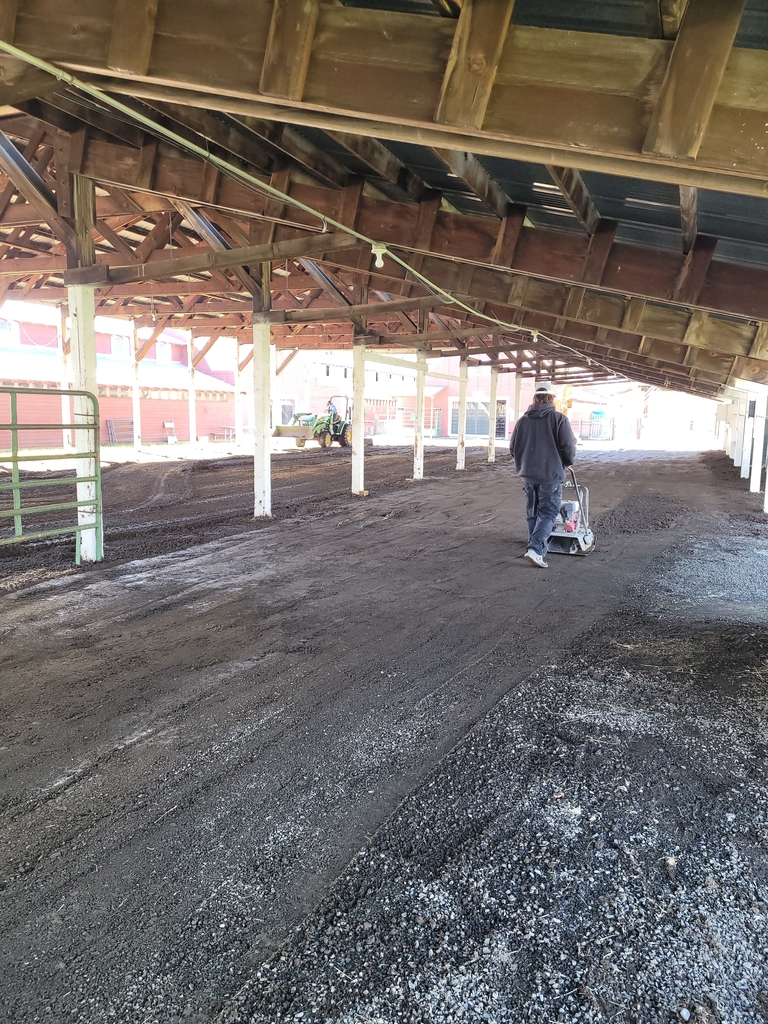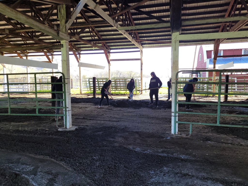 A group of high school students volunteered their morning to help redo the floor of the beef and sheep barns at the Wasco County Fair Grounds today!